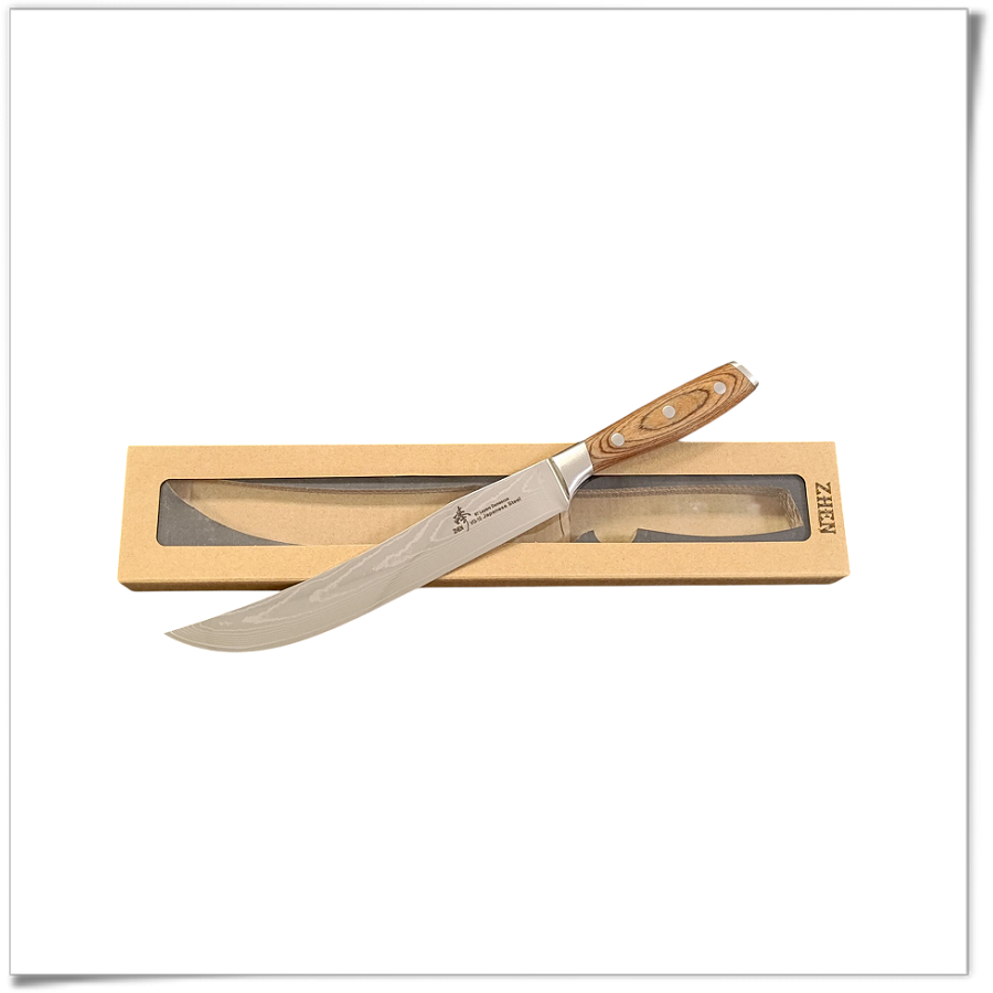 臻 ★日本進口大馬士革(積層鋼)★~ 類胡桃木柄 – 240mm 鐵板切肉刀